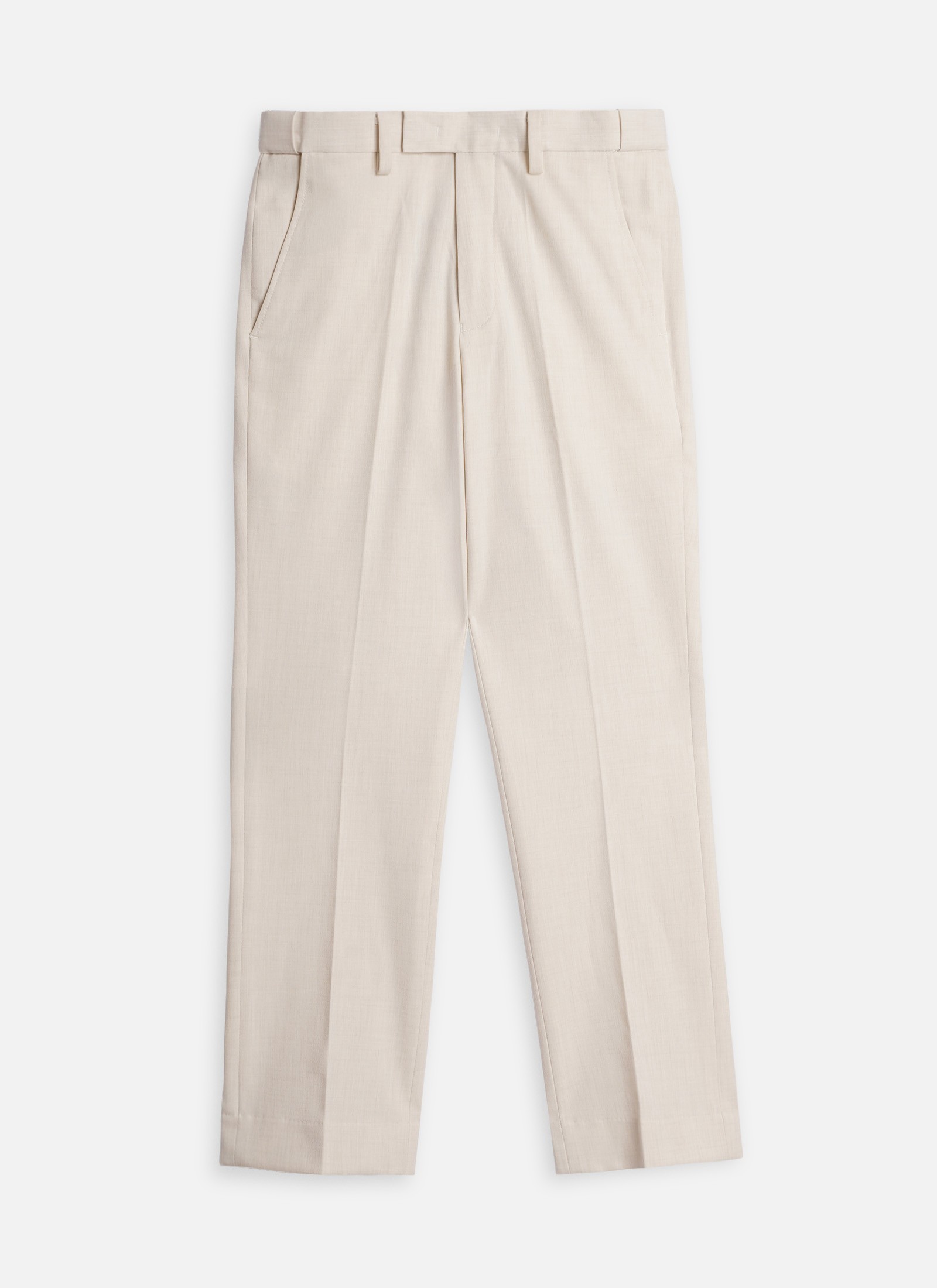 จุดสำคัญอีกอย่างคือน้ำหนักของผ้า และความสามารถในการทิ้งตัวของเนื้อผ้าถูกคำนวณให้สมดุลกับโครงสร้างของPattern ช่วยเสริมให้กางเกงดูสง่างามเมื่อสวมใส่ สร้างซิลูเอตที่สมบูรณ์แบบทุกมุมมอง