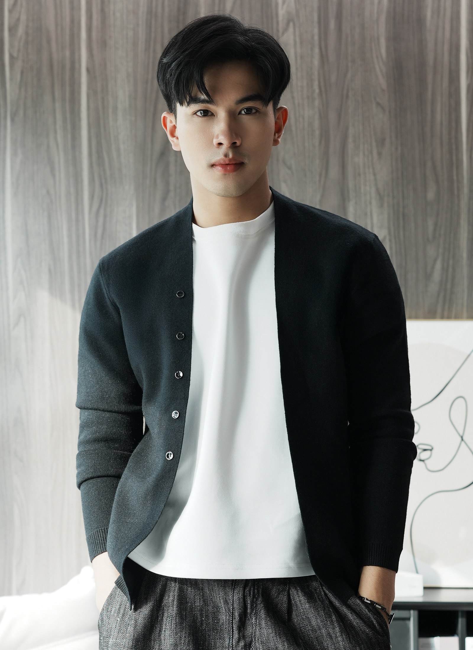 เสื้อคลุมไหมพรมสีพื้น ทรงพอดีตัว ไม่รัดรูป และไม่ใหญ่จนเกินไป