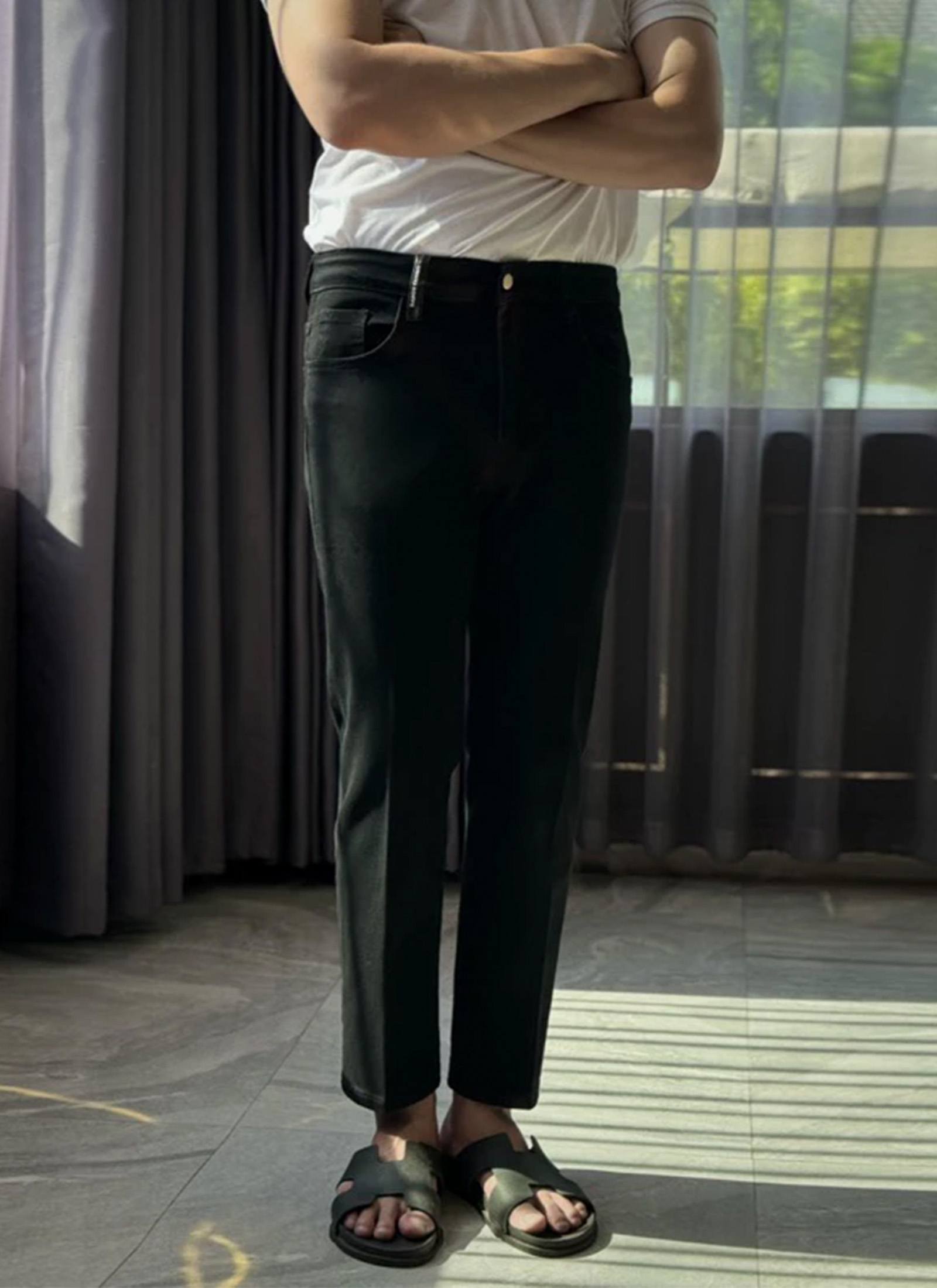 ✨ใหม่✨[3สี]กางเกงยีนส์ Relax Cropped JEAN DANDY COSMO กางเกงยีนส์ Relax Cropped JEAN [ผ้ายืดหยุ่น] ▪️เนื้อผ้า : Premium JEAN ที่ผ่านกระบวนการ Bio-Stone Washing ให้ได้สีที่สวยเป็นธรรมชาติ และได้ผิวสัมผัสที่นุ่มมือ มีส่วนผสมของ SPANDEX ทำให้ผ้ายืดหยุ่น 4 ทิศทาง สวมใส่สบาย ผิวสัมผัสหรู เอวยืดได้ ▪️ทรง : Relax Cropped JEAN ทรงอัพเดทใหม่ จากเทรนด์เกาหลี ❌ไม่เดฟ❌ไม่Slim และไม่กระบอกใหญ่เกินไป ใส่คล่องตัว เอวสูงกว่าปกติเพียงเล็กน้อย ไม่ตะโกน มีกลิ่นไอของ Quiet luxury สามารถ Match กับเสื้อผ้าได้หลากสไตล์ ▪️สี : Navy Blue , Black , Original Blue ▪️SIZE : 28[S] / 30[M] / 32[L] / 34[XL] ▪️✂️มีบริการเสริม: ตัดความยาวขึ้น +50 บาท [ หากต้องการตัด สั่งซื้อและCopyเลขออเดอร์ ส่งให้แอดมินในช่องทาง ✅ㄴine ทันทีภายใน 1 ชม. ] ▪️ราคา 1,790 THB 🔥โปรสั่ง ONLINE ลดเหลือ 798.-